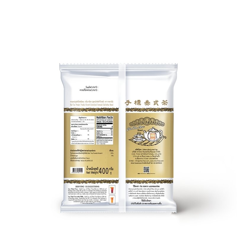 ChaTraMue's Thai Tea Mix Extra Gold is premium thai tea carefully selected from only top tea leaves. With a special process, the blend has undergone to bring out its extra aroma and stronger taste of thai tea.