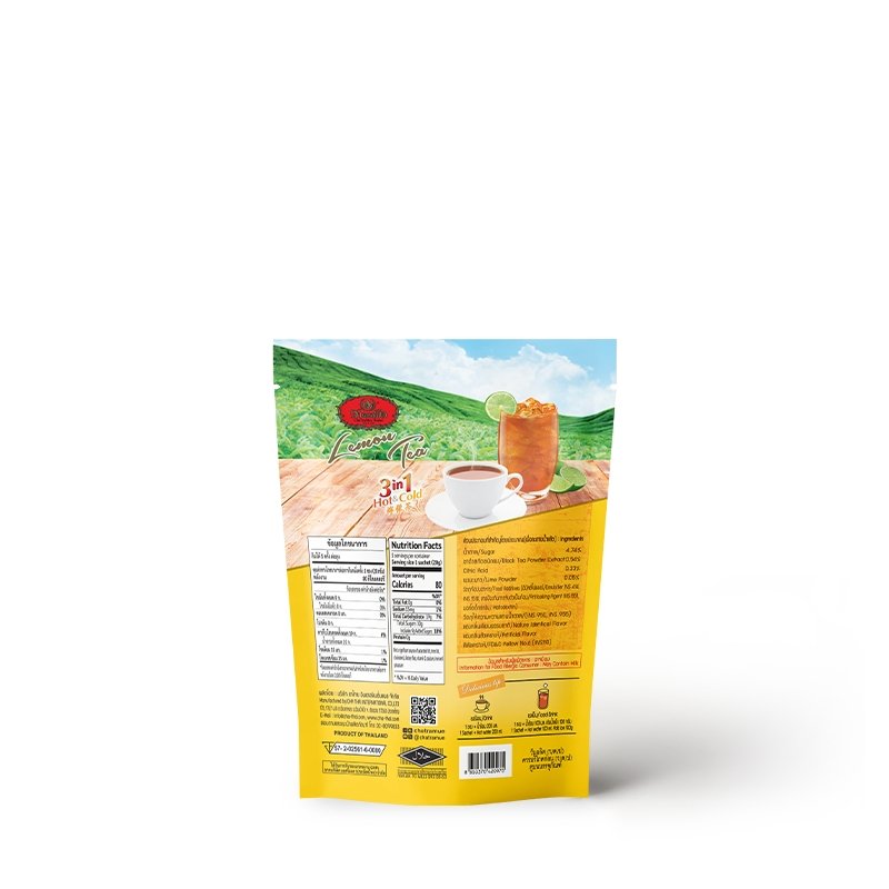 ชามะนาวปรุงสำเร็จชนิดผง (3 in 1) รสชาติชาเข้ม หอมมะนาว ดื่มแล้วชื่นใจ ชงง่ายเพียงเทชาในซองชงกับน้ำร้อนก็สามารถอร่อยกับชามะนาวแก้วโปรดได้ทันที สดชื่นดับกระหาย คลายร้อน ดื่มได้ทั้งร้อน - เย็น